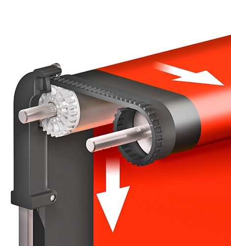 先進的推拉技術使快速門能夠外部使用。關門時,門簾下推。不需要壓載物。