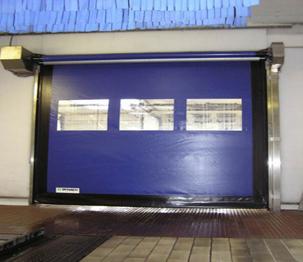 上海(hǎi)快速門(mén)四(sì)周密封良好、由優質折疊鋼製成的加固側導向條以及軟質聚氯乙烯門簾,加強了門的抗風性能。